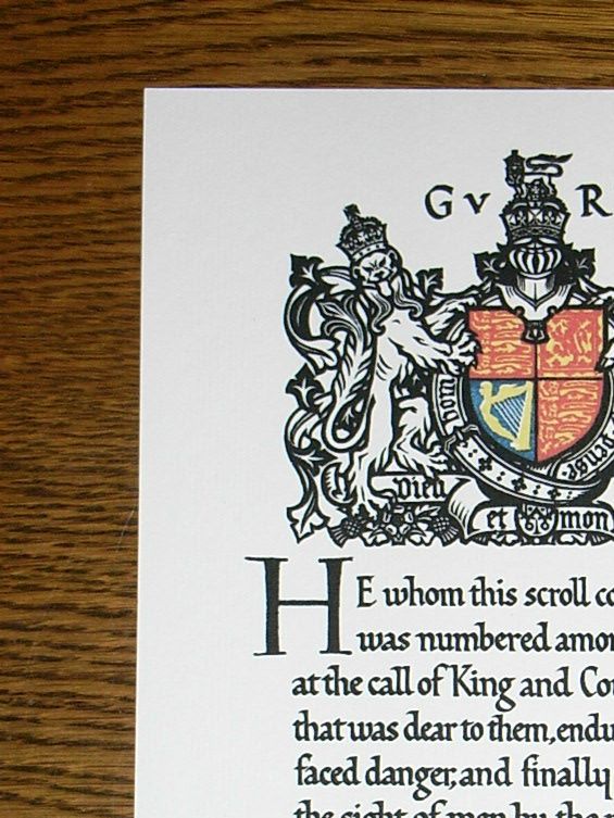 If you wish to purchase one of my replica scrolls, simply send me the relevant casualty details from the CWGC website and I will print an appropriately named scroll of the correct pattern to match. Where possible I try my best to ensure the format the naming takes is as close to that the original would have taken, however if required this can be altered or changed entirely to represent different wants or needs.
